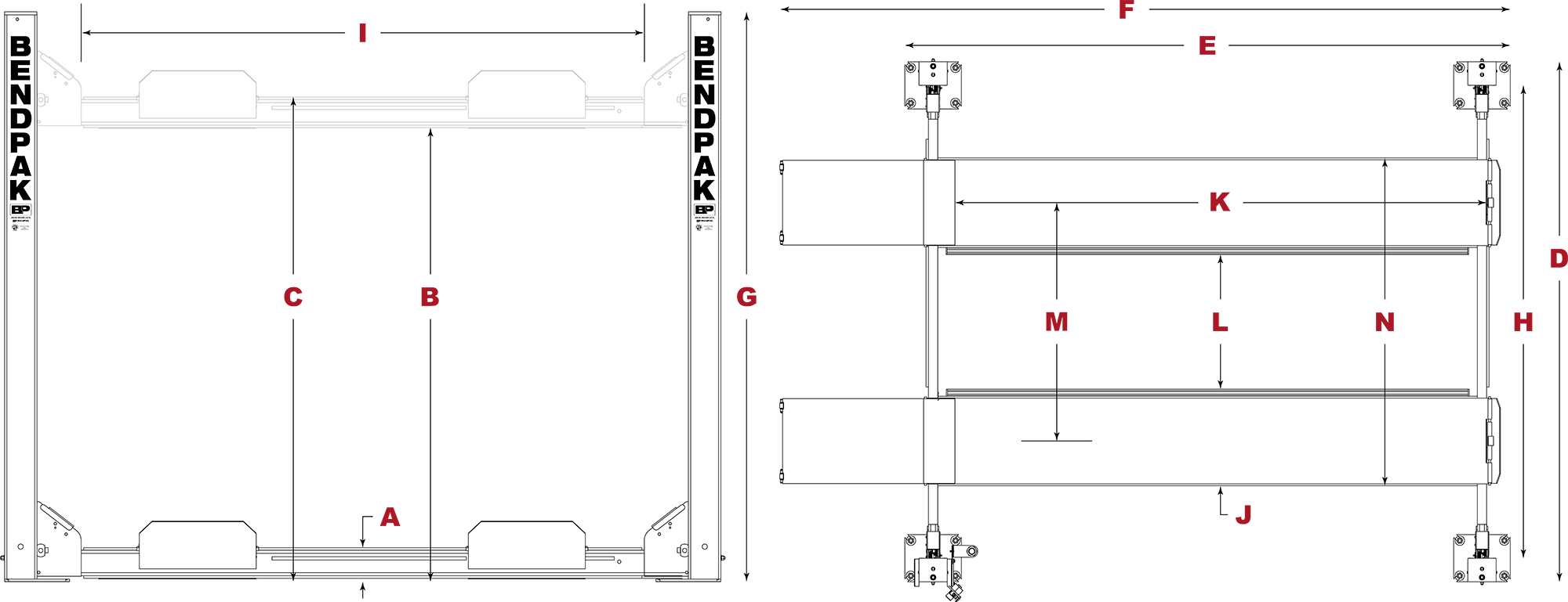 The HD-7W from BendPak is their standard-width car lift model in the HD-7 series. It’s sporting a 110.25” overall width and a spacious 100.25” spread between the columns, there’s plenty of room to park most cars and trucks in the lower position. This will leave you with all the extra space you’ll need to maneuver comfortably.